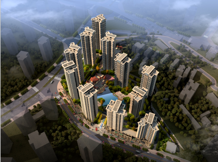 本项目由11栋高层住宅,一栋幼儿园,一栋综合楼组成,高层住宅地下最高为33层(98.6m),地下3层;地上最低20层(61.1m),地下3层,设计为框架剪力墙结构,精装修交房。